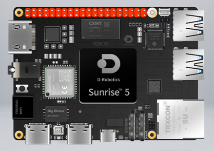 | 主控系统 | RDK X5 主控平台 | • CPU:八核ARM Cortex-A55@1.5GHz,支持64位指令集 • GPU:32GFLOPS图形处理单元 • BPU:1XBayes-e@10TOPS神经网络处理器 • 内存:8GB LPDDR4 高速运行内存 • 存储:32GB 高速闪存 |